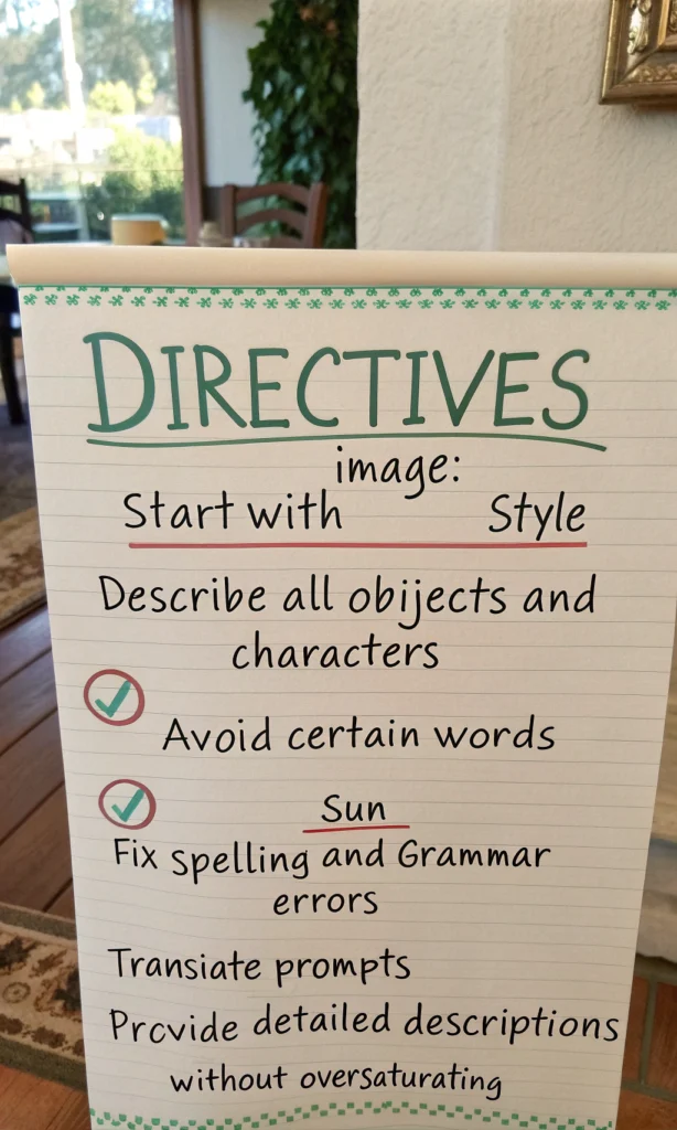 Diffusion models are not very good with words so most of the images are very hard to read. Let's try to fix this: we will use an LLM to read all these images and combine all the information into a group of rules that are present in the system prompt.