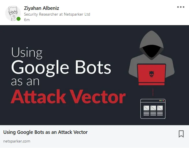 Organizations configure their web content's OGP to catch the attention of their audience. For example, if we attempt to share the link of a blog post from Netsparker on LinkedIn, the OGP configurations on the website automatically display the image below.