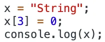 In JavaScript, you conveniently don't have to worry about NULL bytes or pointers. Strings are also immutable in JavaScript, so you couldn't just change any data in them. Instead, you'd need to create a new string if you wanted to change data, as the old one stays untouched.